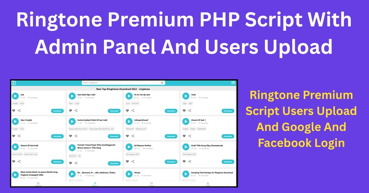PHP Ringtone Theme – Ringtone Play & Download With mp3 and m4r PHP Script, Latest Ringtone PHP Script is very fast loading,rich, 100% secured, google AdSense friendly and it will be regularl