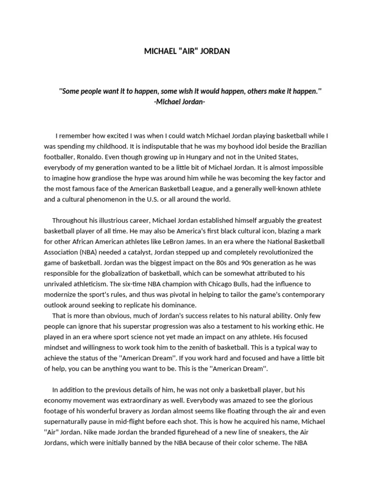 MICHAEL JORDAN Oliver Demeter - Free download as Word Doc (.doc / .docx), PDF File (.pdf), Text File (.txt) or read online for free. Michael Jordan is celebrated as arguably the greatest basketball pl