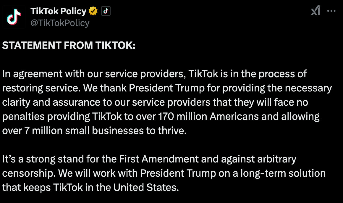daenerys-targaryen: “lurks-no-more: “ayeforscotland: “ayeforscotland: “Trump is probably going to remove the TikTok ban shortly after his inauguration and secure a chunk of the