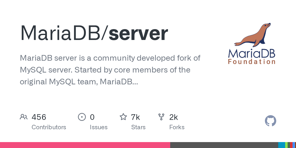 MariaDB server is a community developed fork of MySQL server. Started by core members of the original MySQL team, MariaDB actively works with outside developers to deliver the most featureful, stable