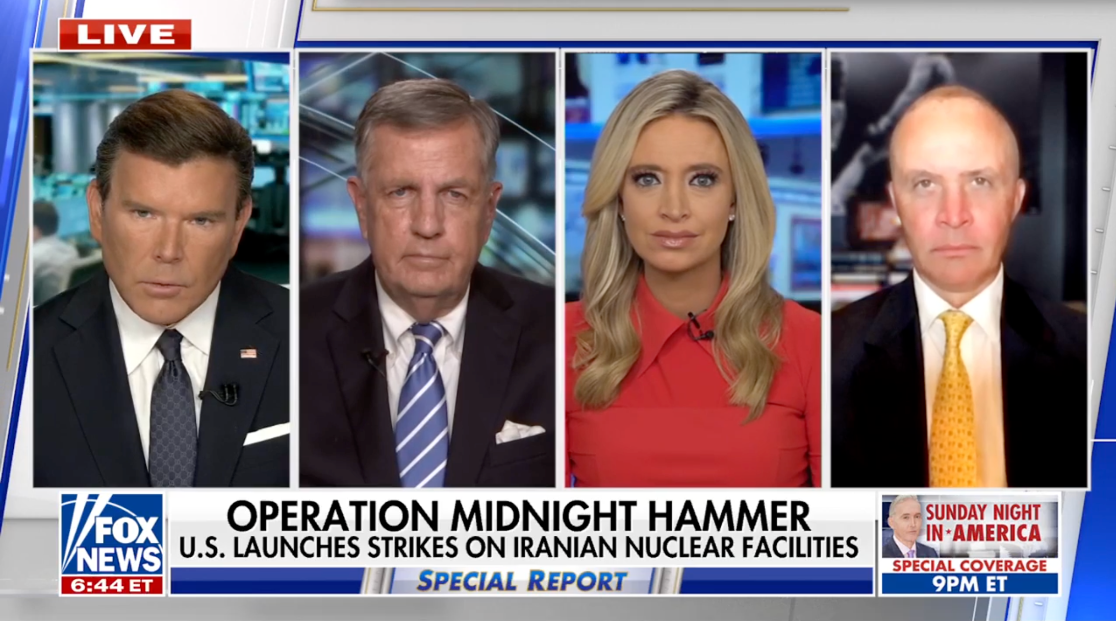 The White House and Pentagon did not immediately elaborate on the operation. But Fox News host Sean Hannity said shortly after 9 p.m. Eastern that he had spoken with Trump and that six bunker buster b