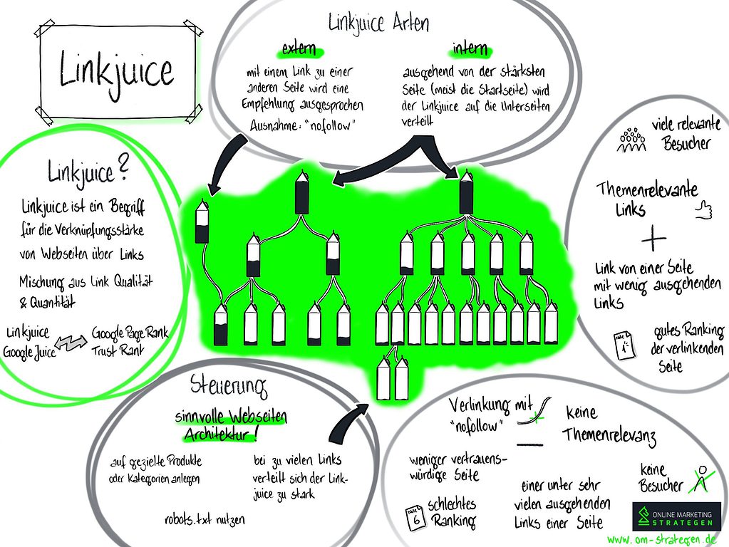 Damals wurde dieser mittels dem Pagerank Sculpting gesteuert, heute ist es wichtig eine sinnvolle Architektur Ihrer Website anzulegen. Ausgehend der Annahme, dass Ihre Startseite den meisten Linkjuice