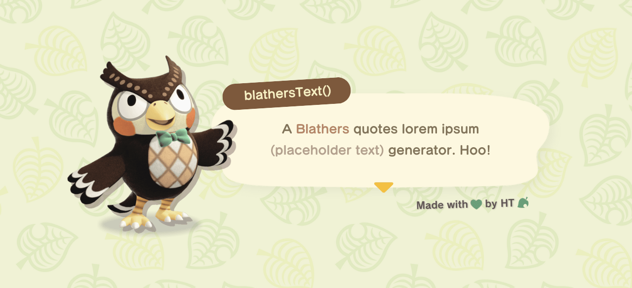 glenthemes: “ALT🦉 ✦ what is blathersText? “blathersText() is a JavaScript plugin that generates lorem ipsum (dummy/placeholder text) but with quotes from Blathers (ACNH