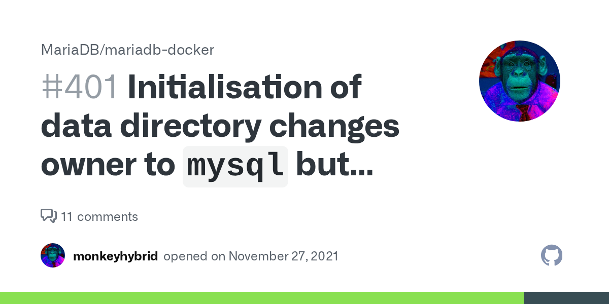 In docker-entrypoint.sh's docker_init_database_dir() function, ownership of /var/lib/mysql is changed to mysql but leaves the group as root. This does not appear to be in line with MariaDB default
