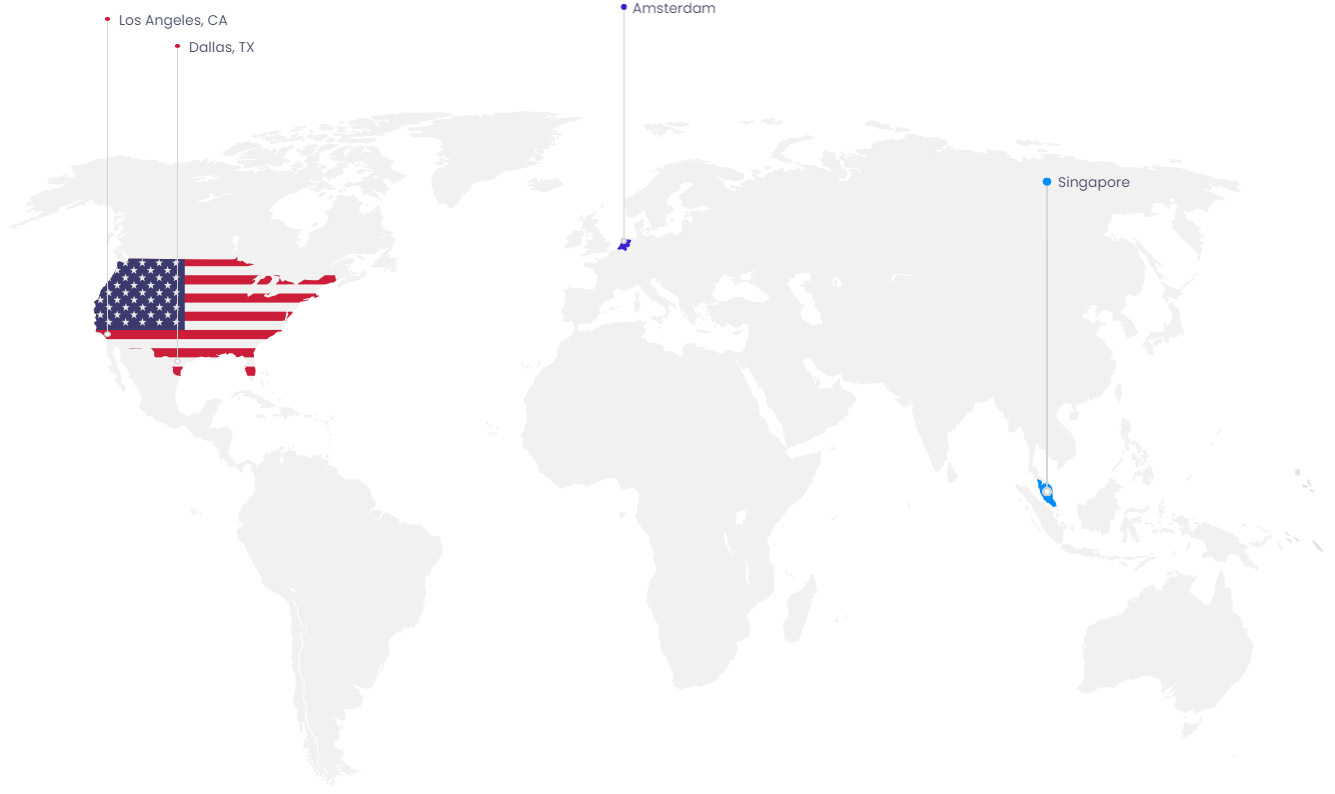We have data center locations in Los Angeles, California, Dallas, Texas, Amsterdam and Singapore. When ordering you can choose the location nearest to your visitor base for the best possible website l